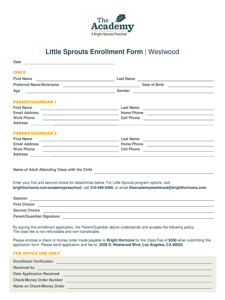 Get the free Little Sprouts Enrollment Form Westwood