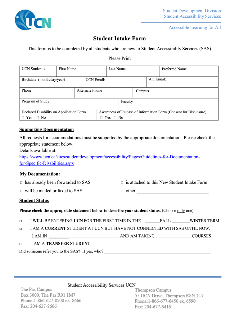 Student Development Division Student Accessibility Services Accessible Learning for Student Intake Form This form is to be completed by all students who are new to Student Accessibility Services (SAS)