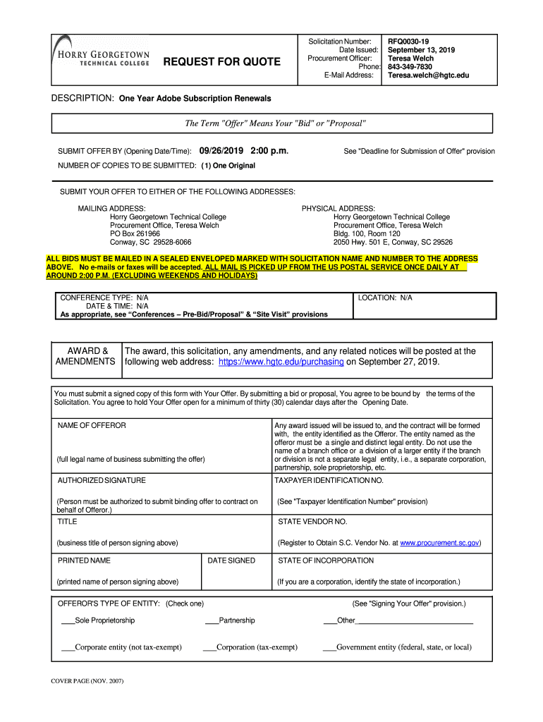 Get the free REQUEST FOR QUOTE - Horry-Georgetown Technical College