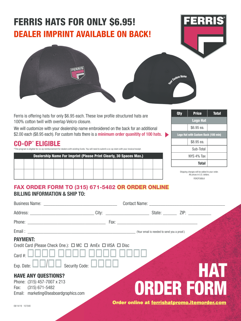 FERRIS HATS FOR ONLY $6.95! Yodeler IMPRINT AVAILABLE ON BACK! Ferris is offering hats for only $6.95 each. These low profile structured hats are