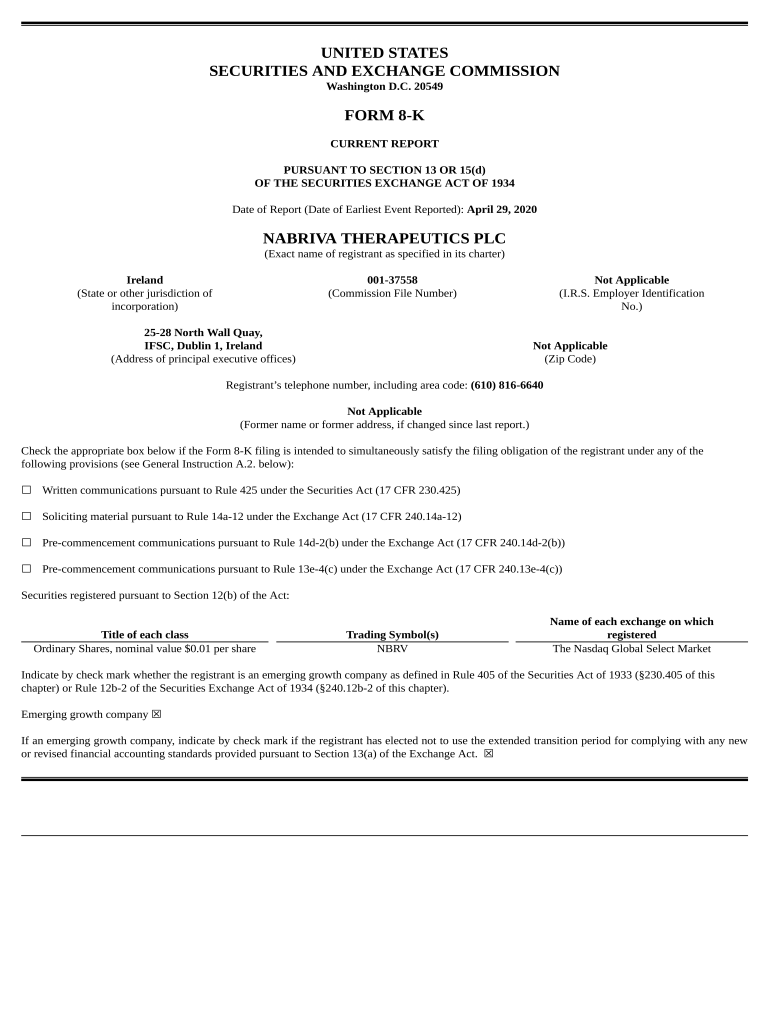 Get the free On April 29, 2020, Nabriva Therapeutics plc (the Company) received written notice (t...