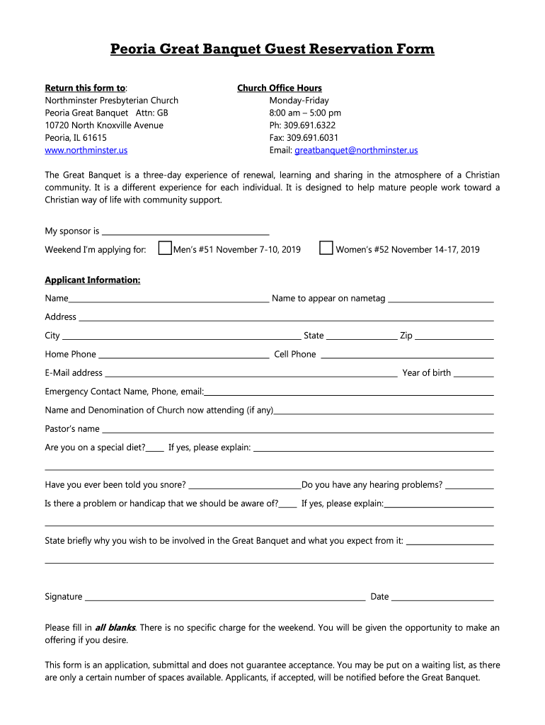 Get the free Online Peoria Great Banquet Guest Reservation Form ...