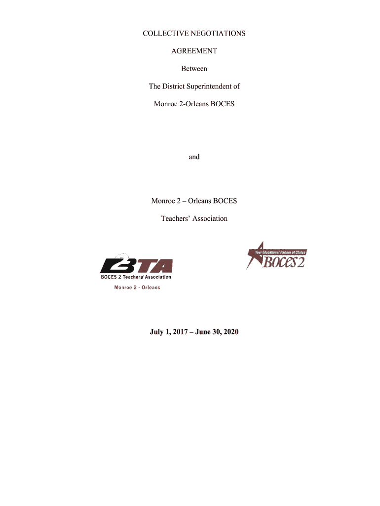COLLECTIVE NEGOTIATIONS AGREEMENT Between The District Superintendent of Monroe 2Orleans BOCESandMonroe 2 Orleans BONES Teachers Association July 1, 2017, June 30, 2020TABLE OF CONTENTS ARTICLESECTION