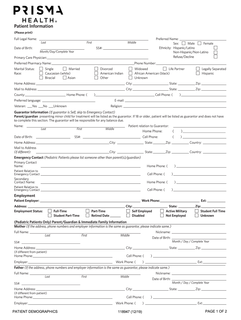 Patient Information (Please print)Full Legal Name: Lactate of Birth:FirstMiddle SS#: Month/Day/Complete YearPreferred Name: Sex: Male Female Ethnicity:Hispanic/LatinoPrimary Care Physician: Preferred