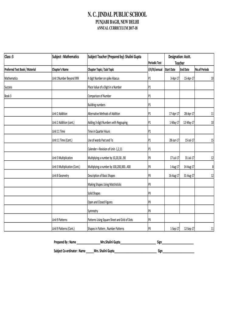 ANNUAL CURRICULUM 201718Class:3Subject:MathematicsSubjectTeacher(Prepared by):ShaliniGupta