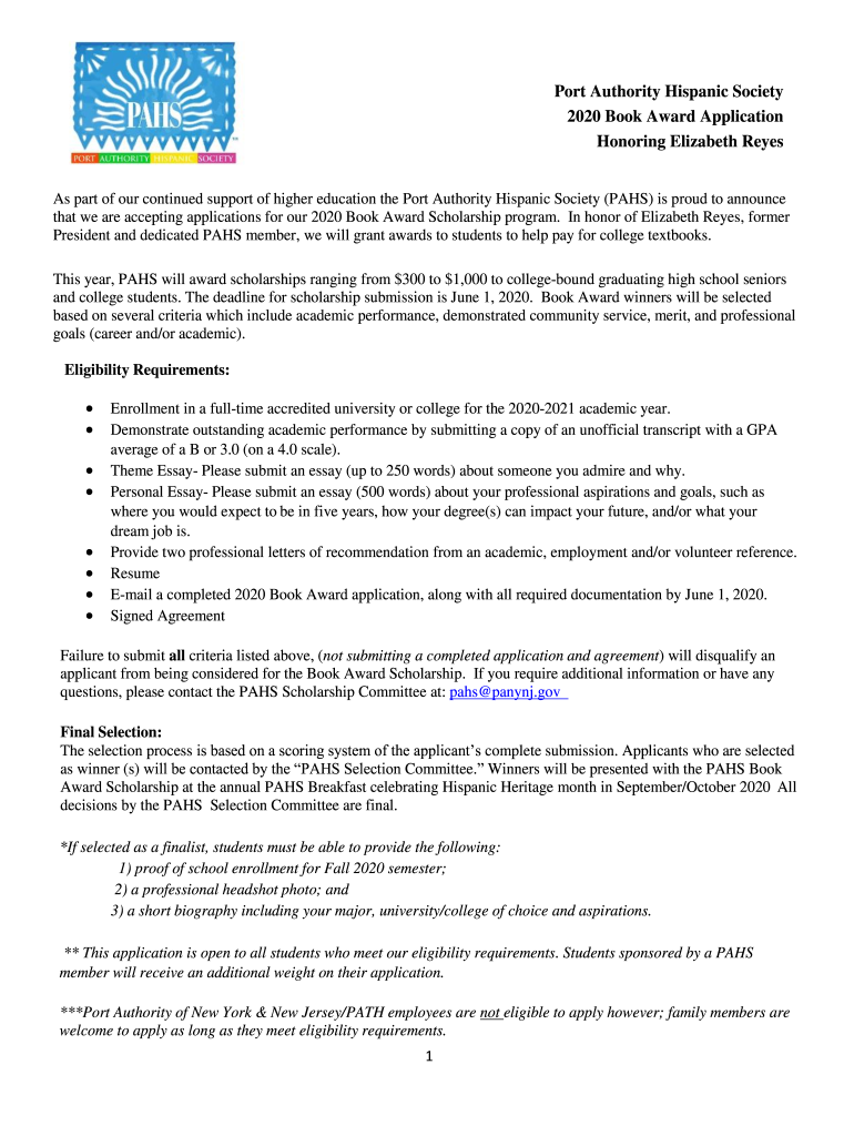 As part of our continued support of higher education the Port Authority Hispanic Society (PASS) is proud to announce