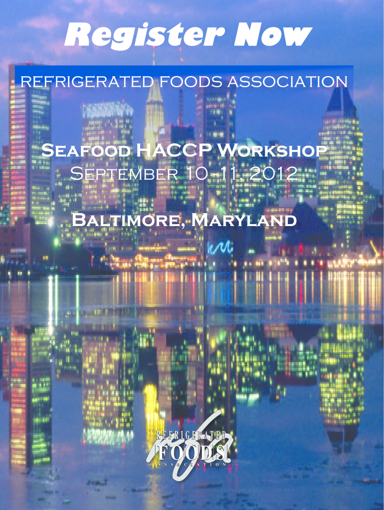 Register Now refrigerated foods association Seafood HACCP Workshop September 10 -11, 2012 Baltimore, Maryland Seafood HACCP Program In conjunction with this year s Fall Symposium in Baltimore, the