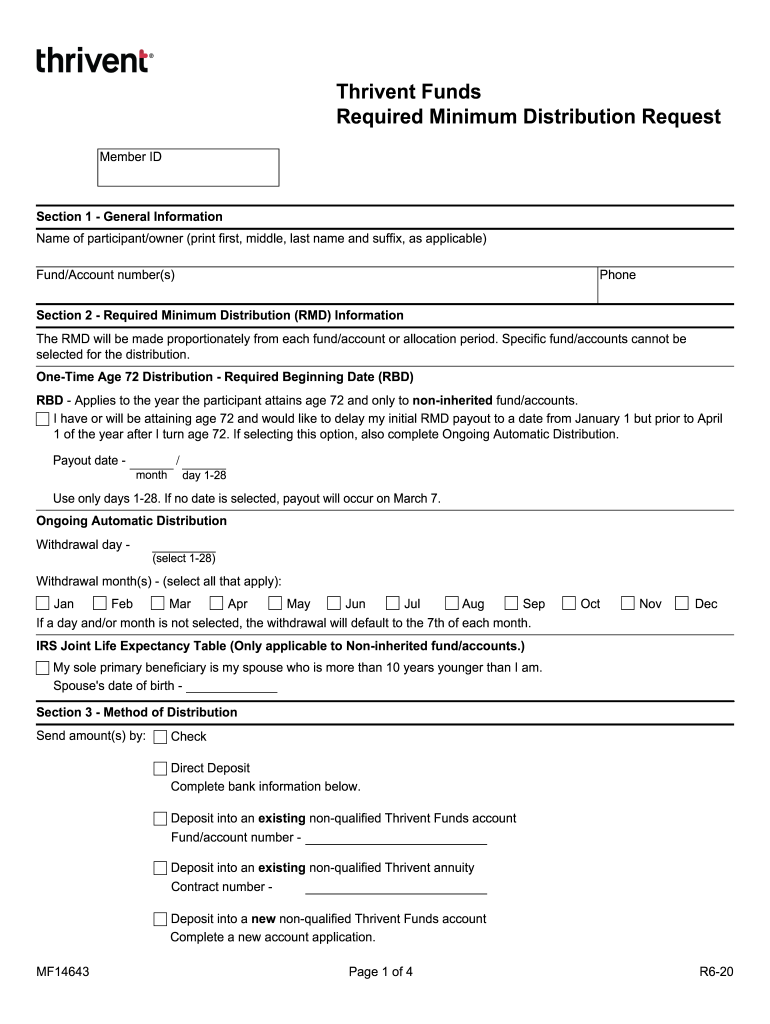 Thrive Funds Required Minimum Distribution Request Member Midsection 1 General Information Name of participant/owner (print first, middle, last name and suffix, as applicable) Fund/Account number(s)Venesection