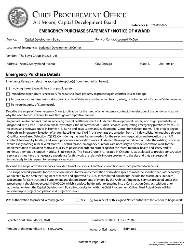 Reference #: 321000095EMERGENCY PURCHASE STATEMENT / NOTICE OF AWARD