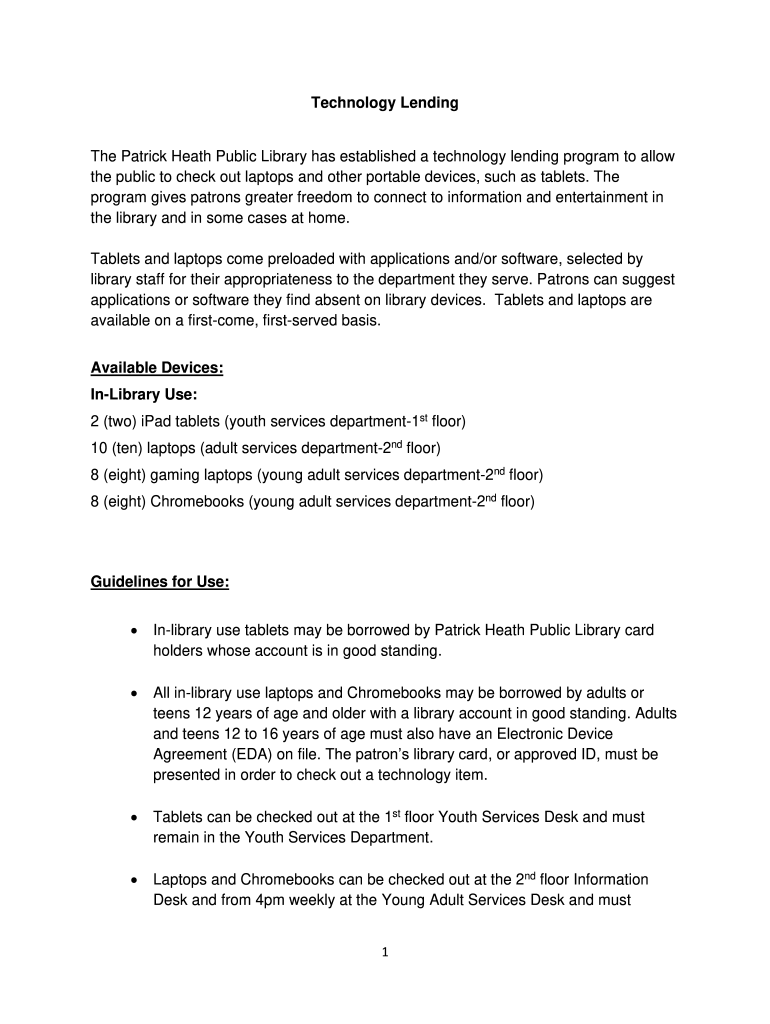 Get the free Technology Lending The Patrick Heath Public Library has ...