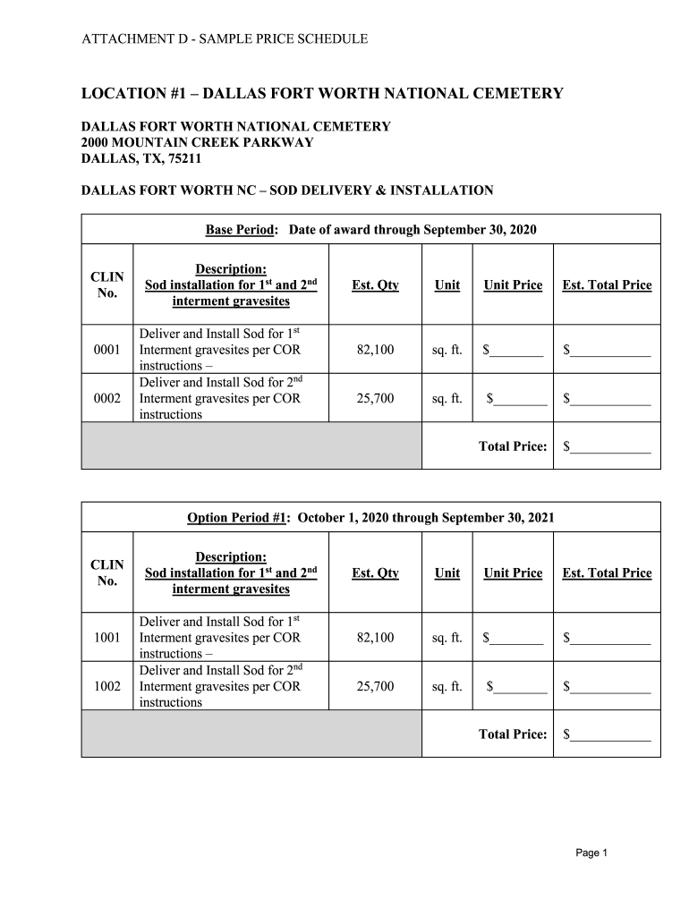 ATTACHMENT D SAMPLE PRICE SCHEDULELOCATION #1 DALLAS FORT WORTH NATIONAL CEMETERY
