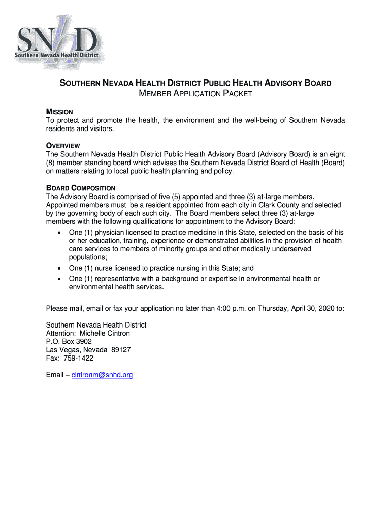 SOUTHERN NEVADA HEALTH DISTRICT PUBLIC HEALTH ADVISORY BOARD