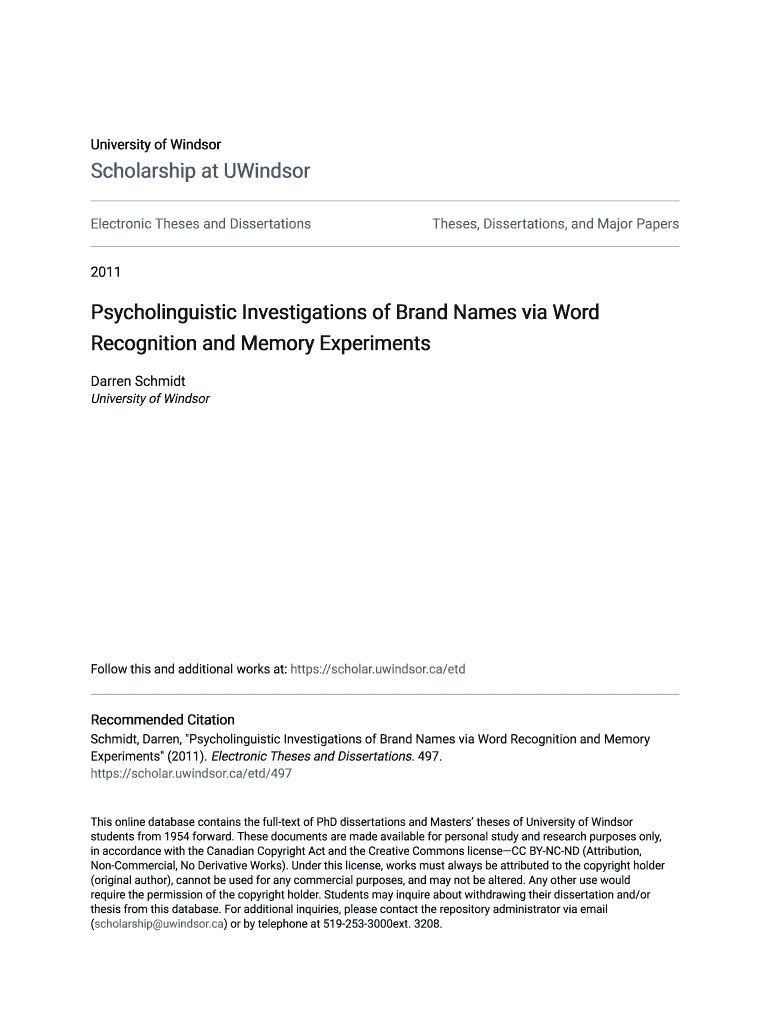 Get the free Psycholinguistic Investigations of Brand Names via Word Recognition and Memory Exper...