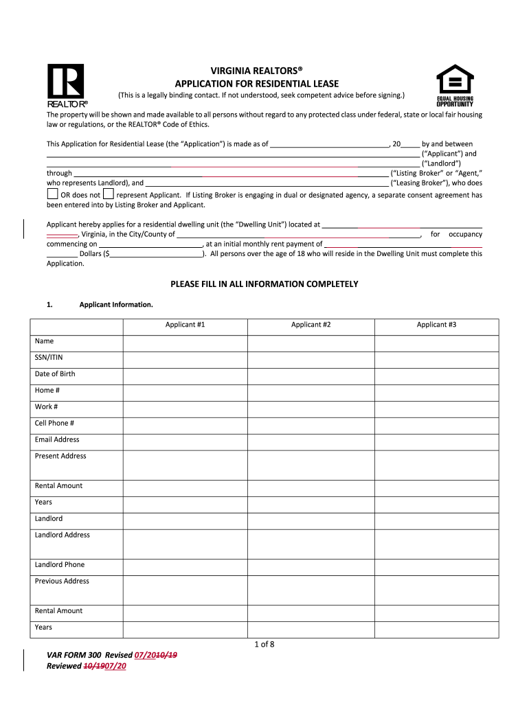 Get the free Virginia REALTORS Form 300 - Rental Application - 2020-07 RL