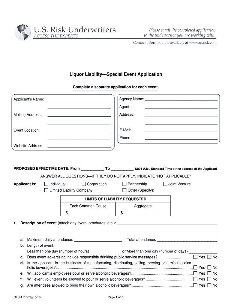 You typically need to provide information about the event, including location, attendance estimates, and liquor handling procedures. Additional documents may be required based on the insurer’s policies.