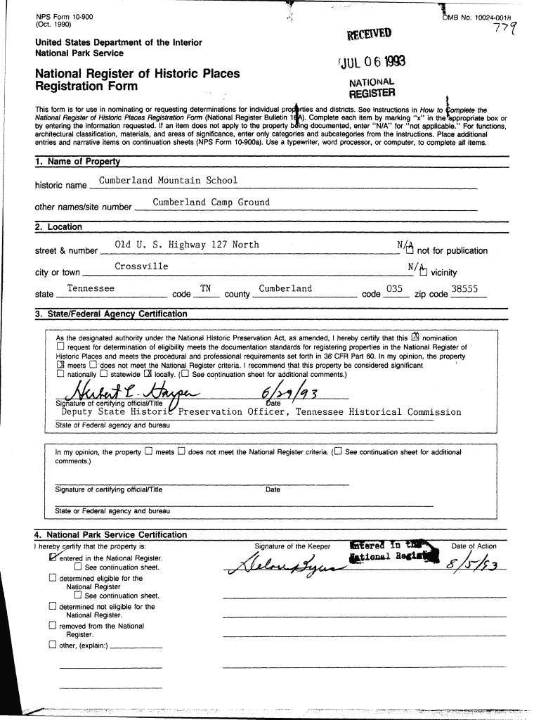 NFS Form 10900 (Oct. 1990)* ')MB No. 10024001877?WERE)United States Department of the Interior National Park Service JUL 0 6 1998National Register of Historic Places Registration Forms form is for