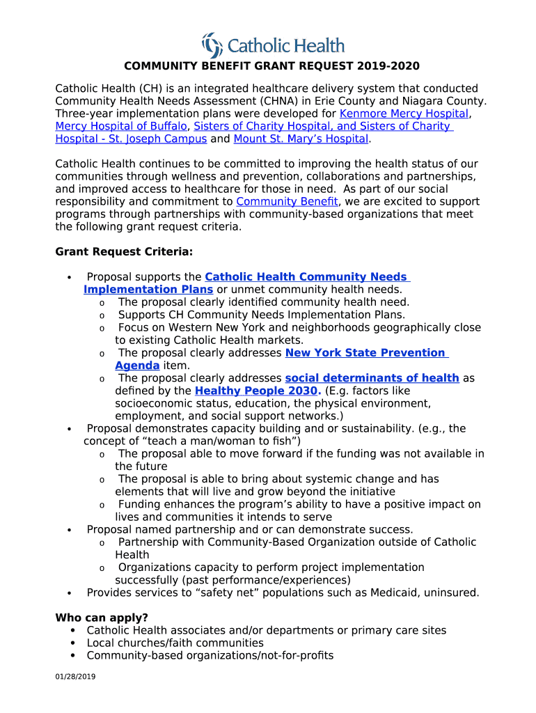 What is Community Benefit Grant Request 2019 - Catholic Health Form?