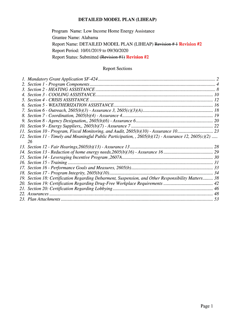 DETAILED MODEL PLAN (LIH EAP) Program Name: Low Income Home Energy Assistance Grantee Name: Alabama Report Name: DETAILED MODEL PLAN (LIH EAP) Revision # 1 Revision #2 Report Period: 10/01/2019 to