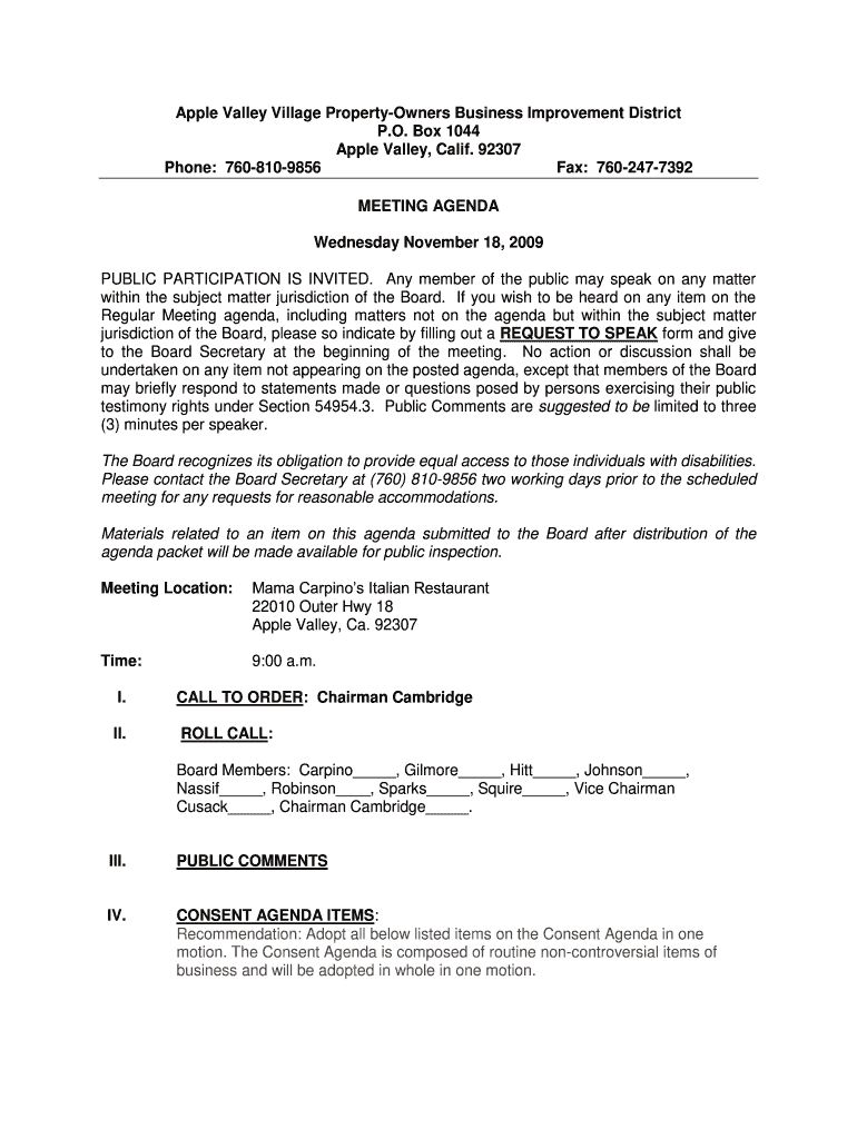 Get the free Apple Valley Village Property-Owners Business Improvement ...