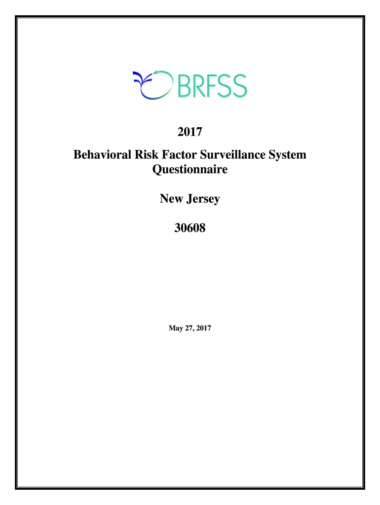 2017 Behavioral Risk Factor Surveillance System Questionnaire New Jersey 30608May 27, 2017Behavioral Risk Factor Surveillance System New Jersey 30608 2017 Questionnaire Table of Contents Interviewers