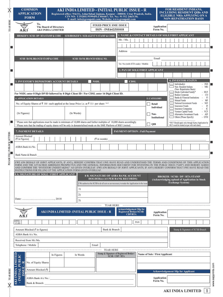 TEAR HERE “COMMON APPLICATION FORMAT INDIA LIMITED INITIAL PUBLIC ISSUER FOR RESIDENT INDIANS, INCLUDING RESIDENT Ribs AND ELIGIBLE Iris APPLYING ON A REPATRIATION BASISRegistered office: 9/6(11),