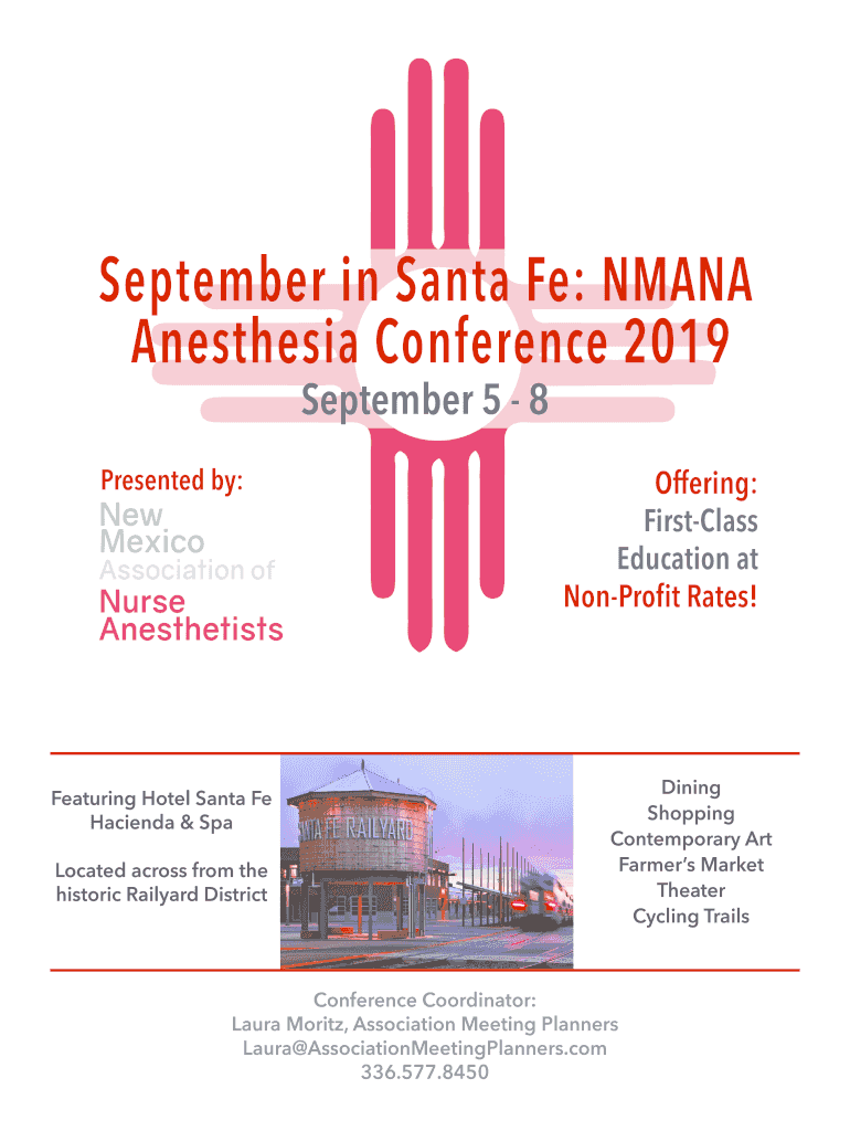 September in Santa Fe: MANA Anesthesia Conference 2019 September 5 8Presented by:Featuring Hotel Santa Fe Hacienda & Spa Located across from the historic Railcard DistrictOffering: First-class Education