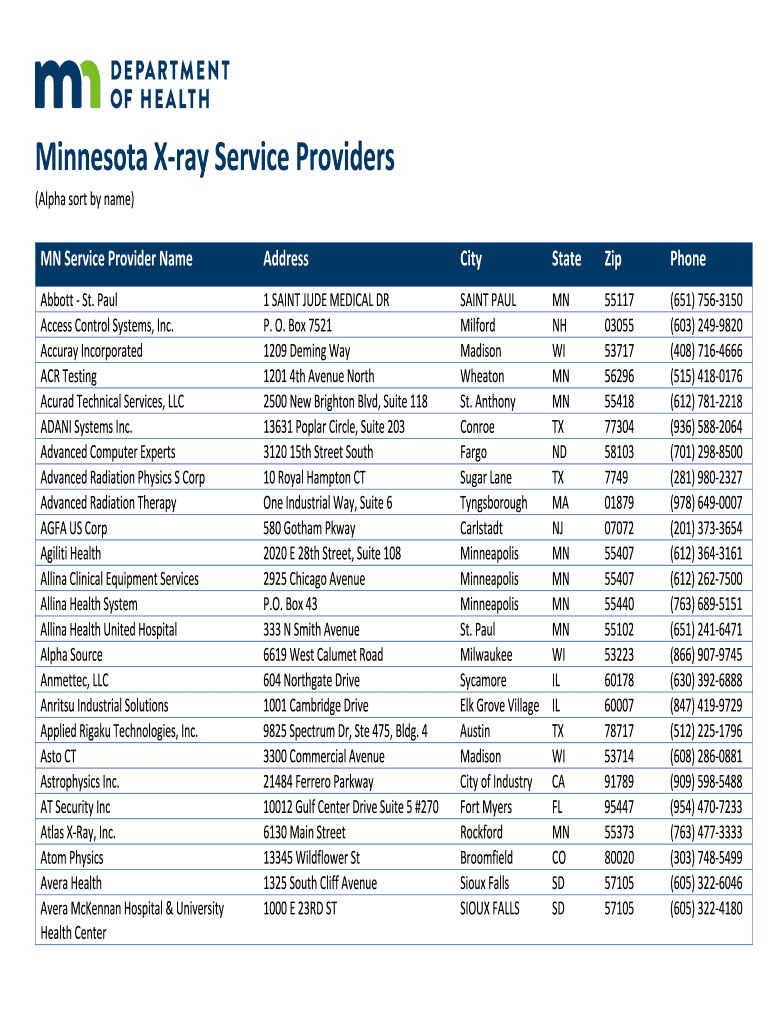 Get the free Registered Minnesota X-ray Service Provider Vendors