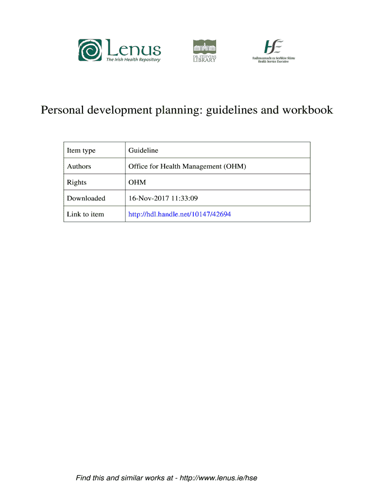 The Personal Development Planning Workbook is a performance review document used by employees to assess their career development and set actionable goals.