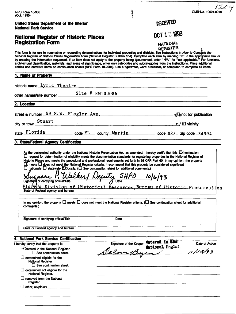 Amino. 100240018NPS Form 10900 (Oct. 1990)United States Department of the Interior National Park ServiceOCT131983National Register of Historic Places Registration FormNATIQNAL REGISTER, This form