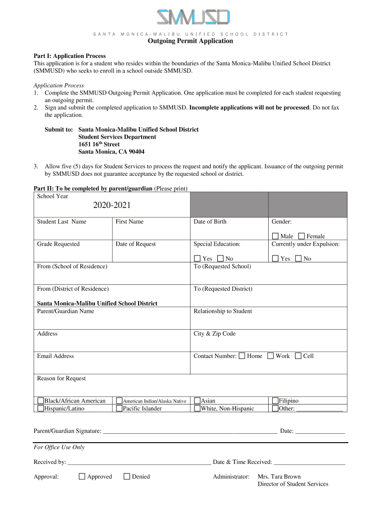 Get the free Outgoing Permit Application - smmusd.org