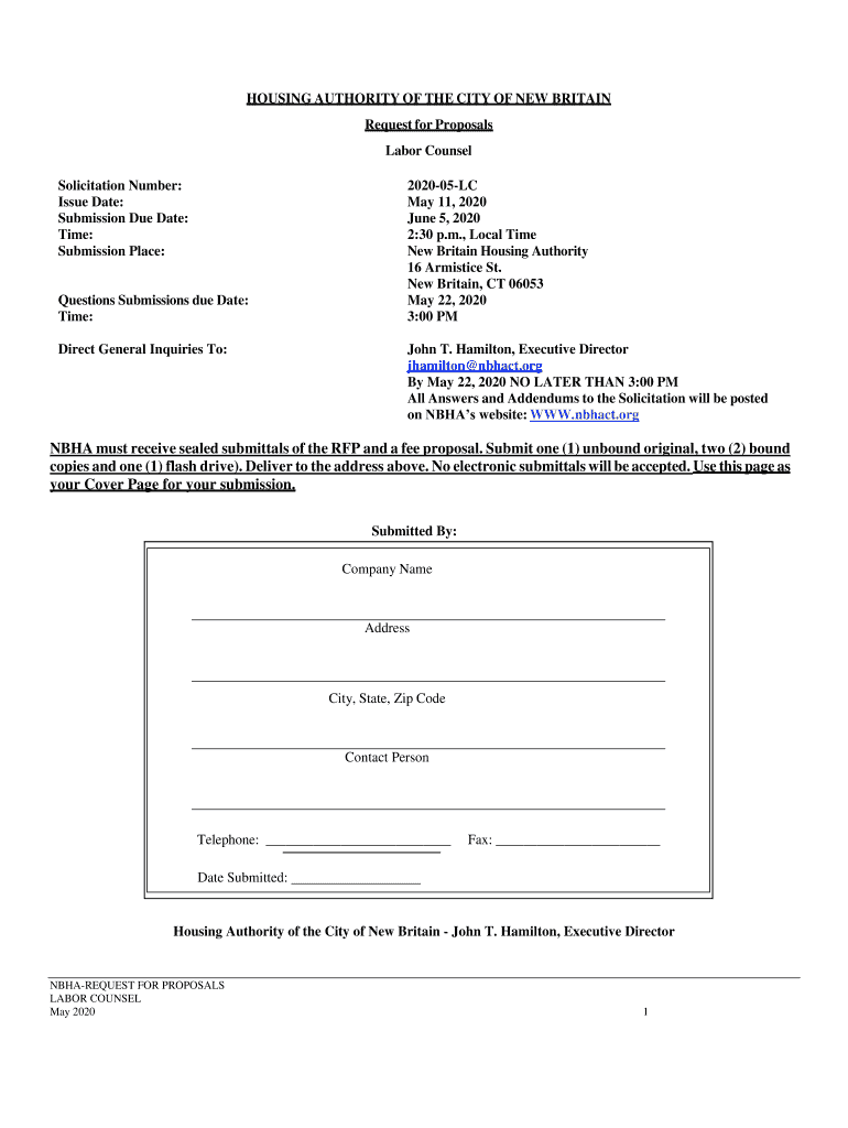 Get the free NBHA must receive sealed submittals of the RFP and a fee ...