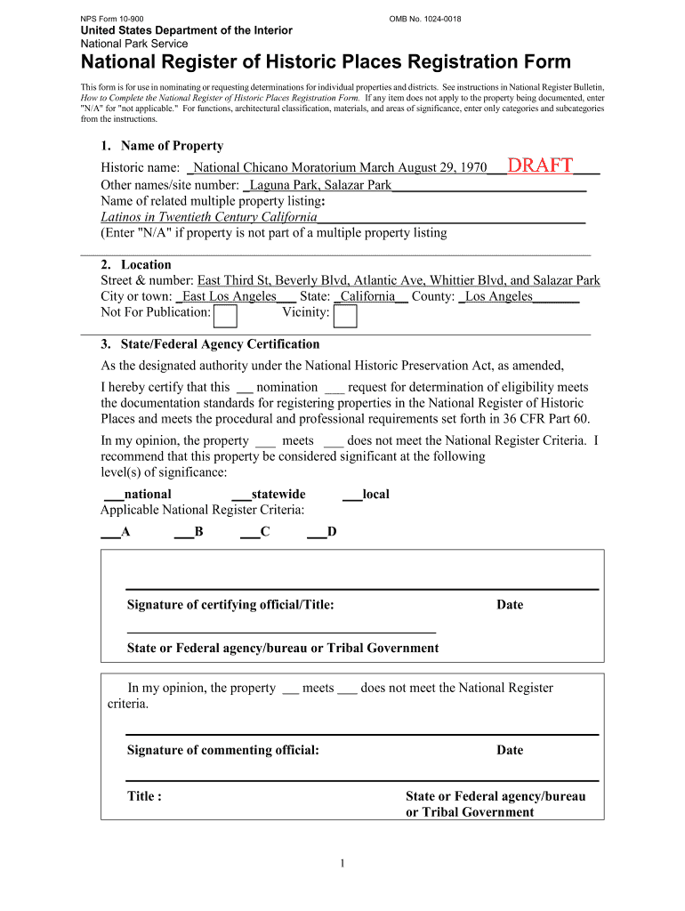 NPS Form 10900OMB No. 10240018United States Department of the Interior National Park ServiceNational Register of Historic Places Registration Form This form is for use in nominating or requesting