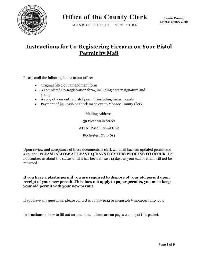 Jamie Romeo Monroe County ClerkInstructions for Registering Firearm on Your Pistol Permit by Sailplane mail the following items to our office: Original filled out amendment form A completed Registration
