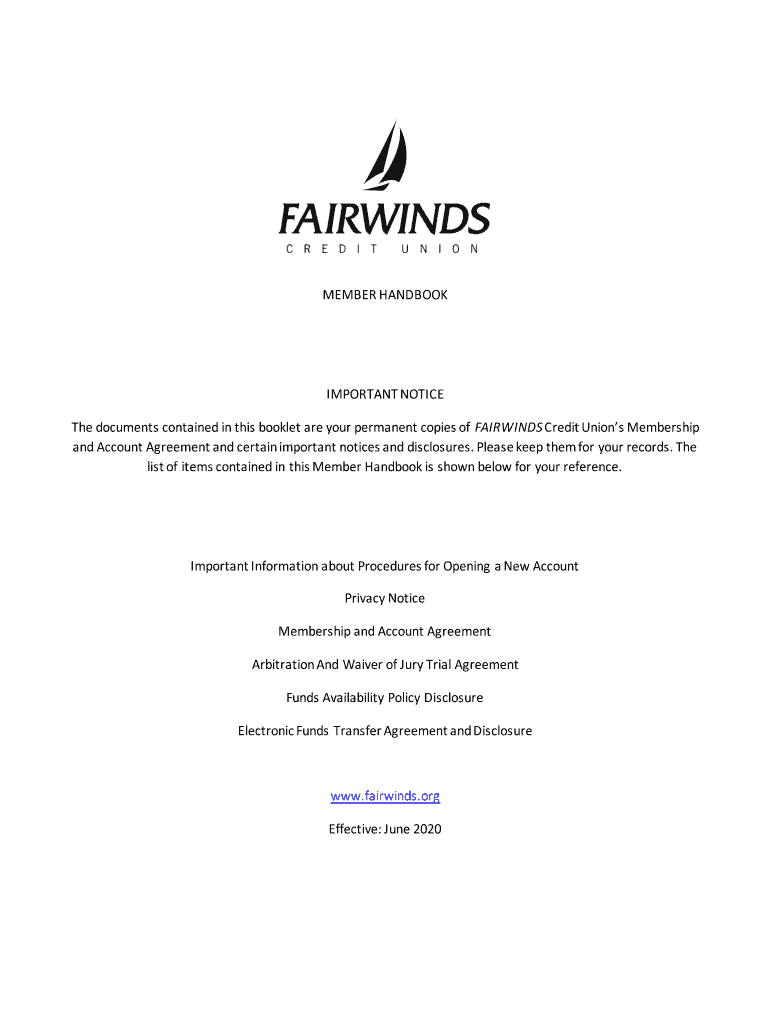 The documents contained in this booklet are your permanent copies of FAIRINGS Credit Unions Membership