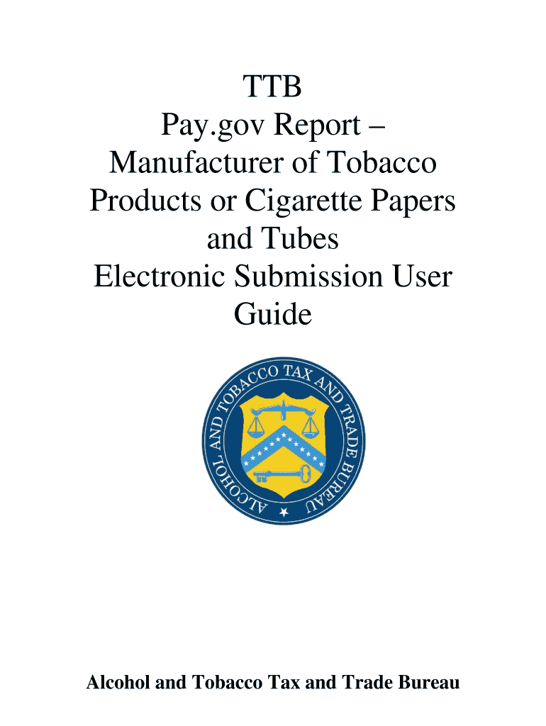 TT Pay.gov Report Manufacturer of Tobacco Products or Cigarette Papers and Tubes Electronic Submission User GuideAlcohol and Tobacco Tax and Trade Bureau Electronic Filing User Suitable of Contents