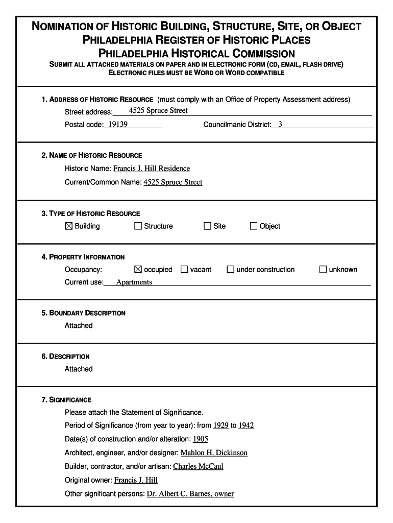 Get the free Nomination for the Philadelphia Register of Historic Places