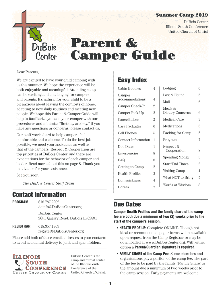 Fill out your dubois centerform camp and online with pdfFiller!