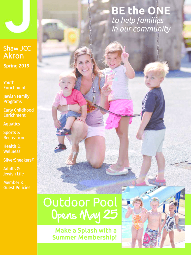 BE the Outdoor Pool to help families Opens May 26 in our community Shaw JCCAkronSpring 2019 Youth Enrichment Jewish Family Programs Early Childhood Enrichment Aquatics Sports & Recreation Health &