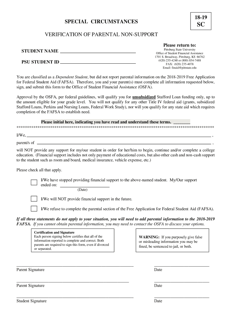 1819SPECIAL CIRCUMSTANCESSCVERIFICATION OF PARENTAL NONSUPPORT