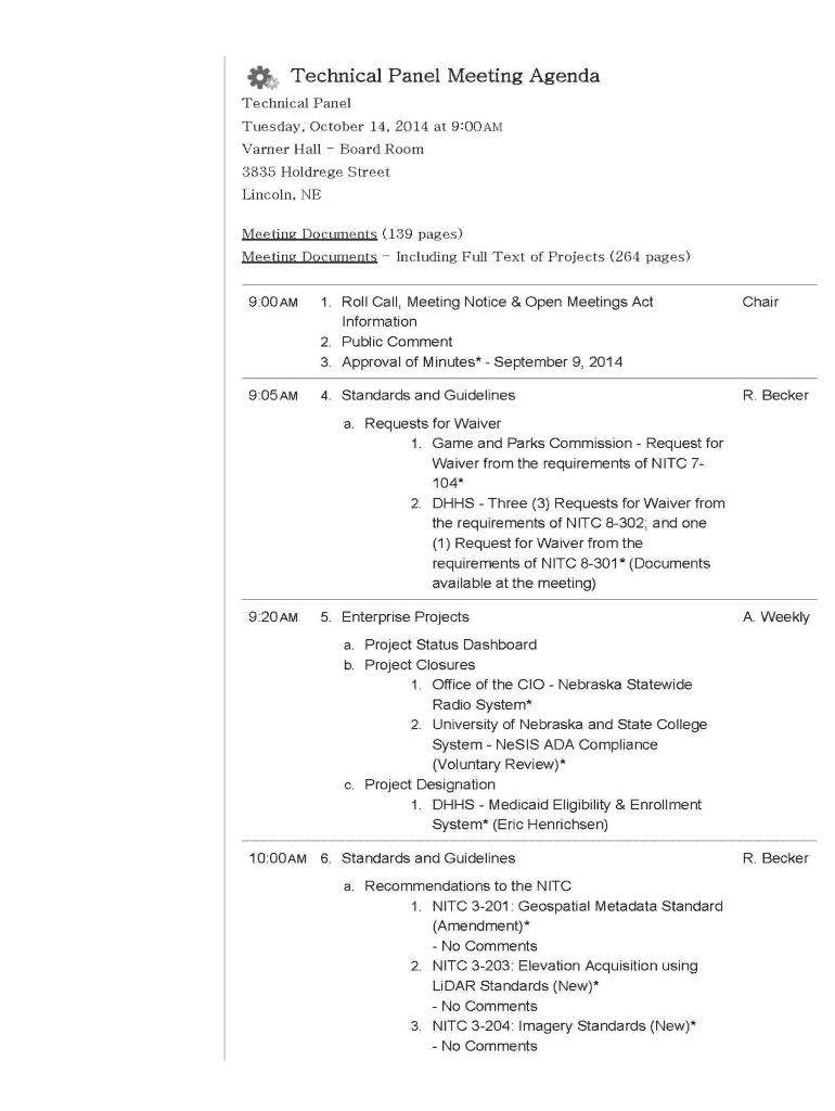 Get the free TECHNICAL PANEL - nitc.nebraska.gov - nitc nebraska