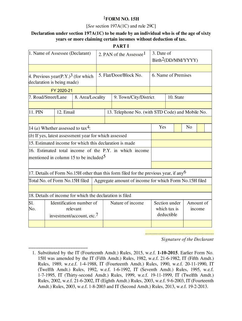 1FORM NO. 15H See section 197A(1C) and rule 29C Declaration under section 197A(1C) to be made by an individual who is of the age of sixty years or more claiming certain incomes without deduction of