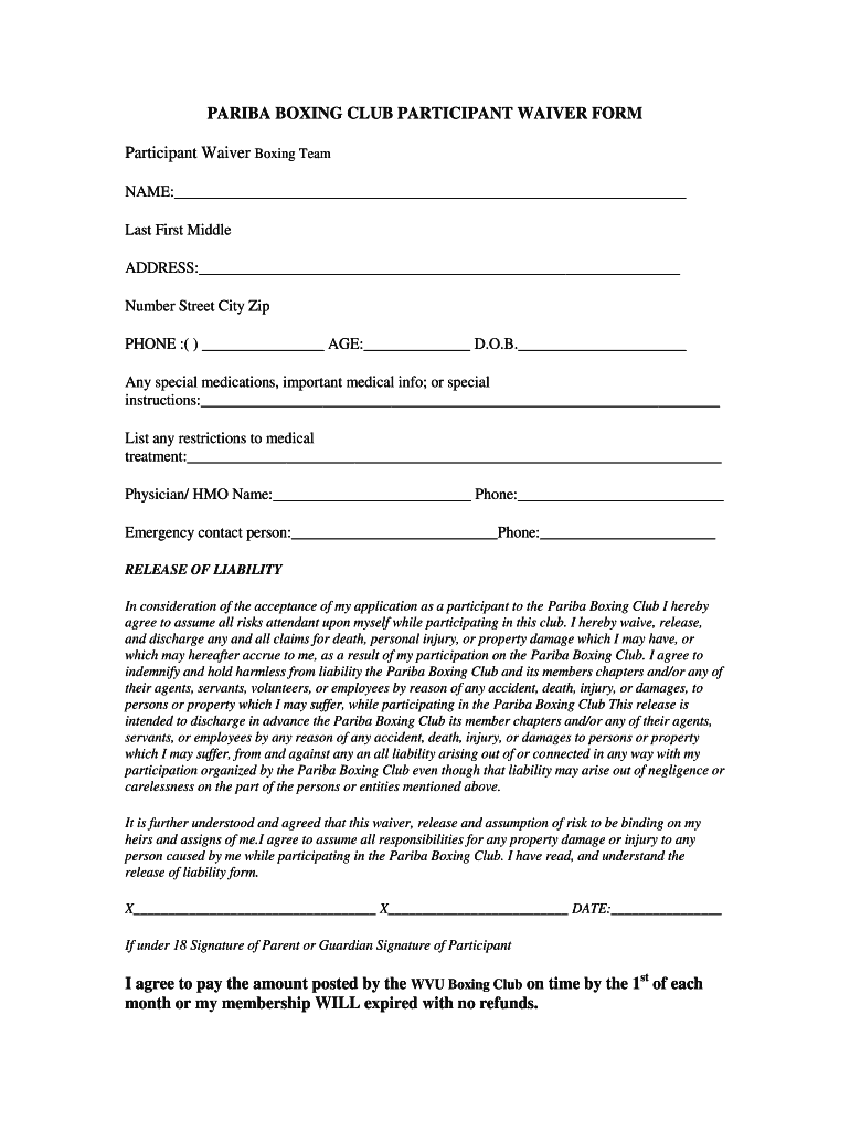 How to fill out boxing club participant waiver