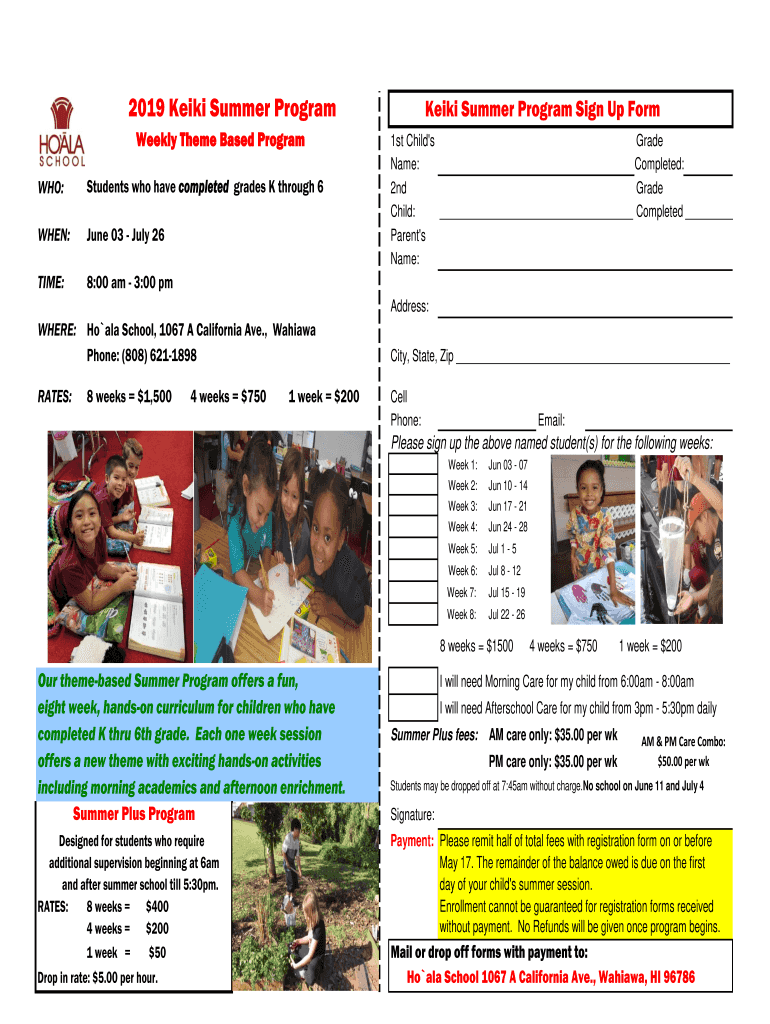 Get the free 2019 Keiki Summer Program Keiki Summer Program Sign Up