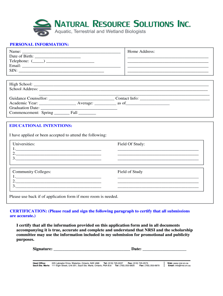Get the free NRSI Scholarship bApplicationb