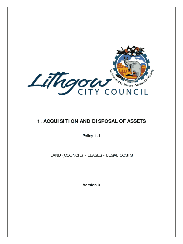 1. ACQUISITION AND DISPOSAL OF ASSETS Policy 1.1LAND (COUNCIL) LEASES LEGAL Conversion 31.ACQUISITION AND DISPOSAL OF ASSETS 1.1 LAND (COUNCIL) LEASES LEGAL COSTS OBJECTIVE: To recover Council's costs