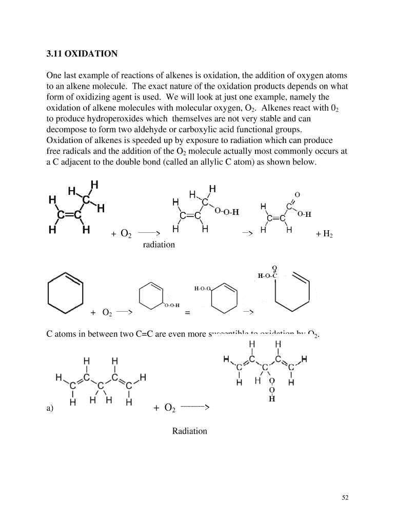 to an alkene molecule. The exact nature of the oxidation products depends on what