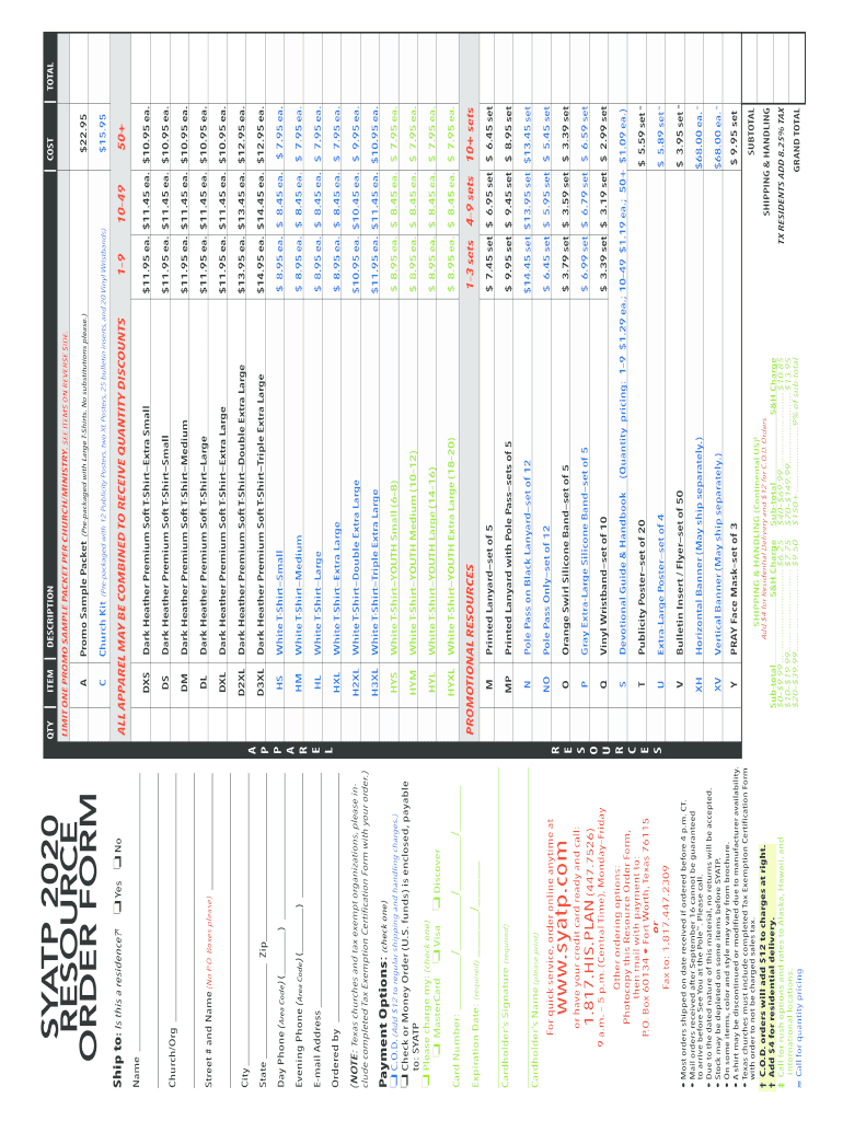 ITEM DESCRIPTION Church Kit(Prepackaged with Large Shirts. No substitutions please.)DSDMDL104950+$$15.9522.95COST C.O.D. orders will add $12 to charges at right. Add $4 for residential delivery. Call