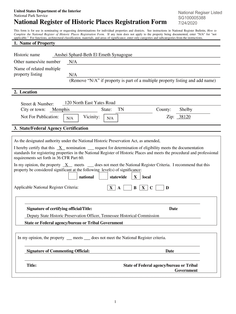 National Register Listed SG100005388 7/24/2020United States Department of the Interior National Park ServiceNational Register of Historic Places Registration Forms form is for use in nominating or