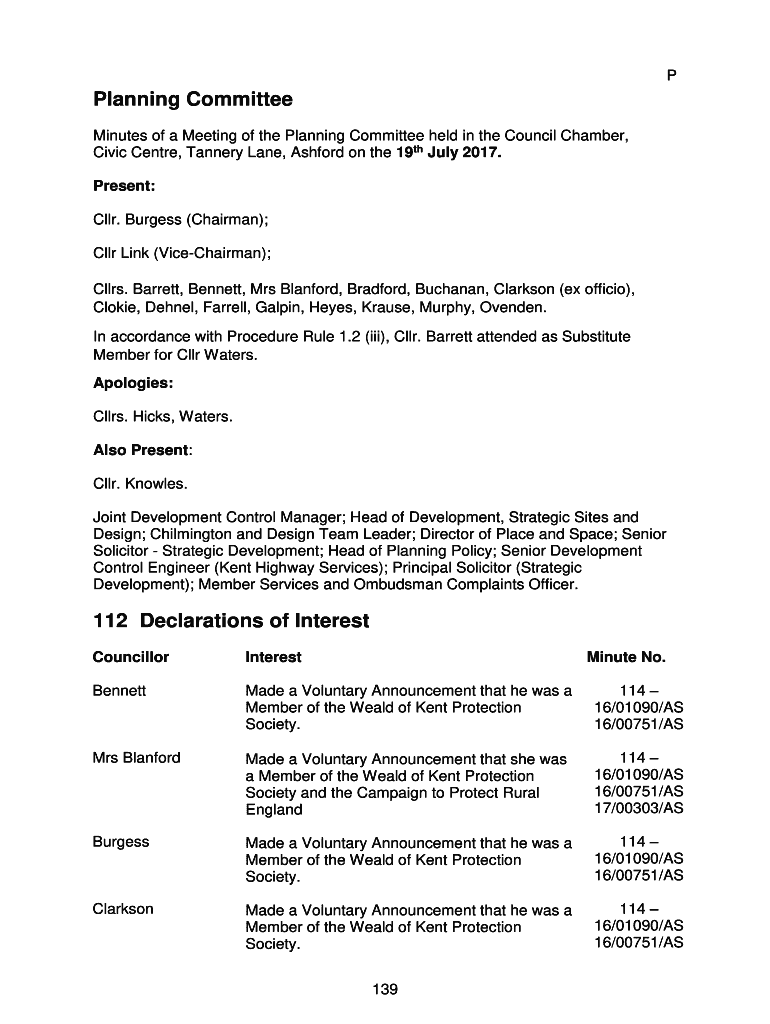 Minutes of a Meeting of the Planning Committee held in the Council Chamber,