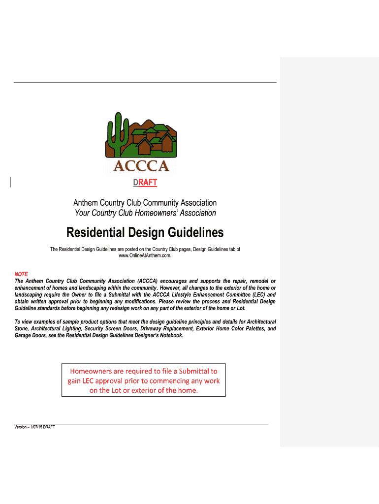 DRAFT Anthem Country Club Community Association Your Country Club Homeowners Association Residential Design Guidelines The Residential Design Guidelines are posted on the Country Club pages, Design